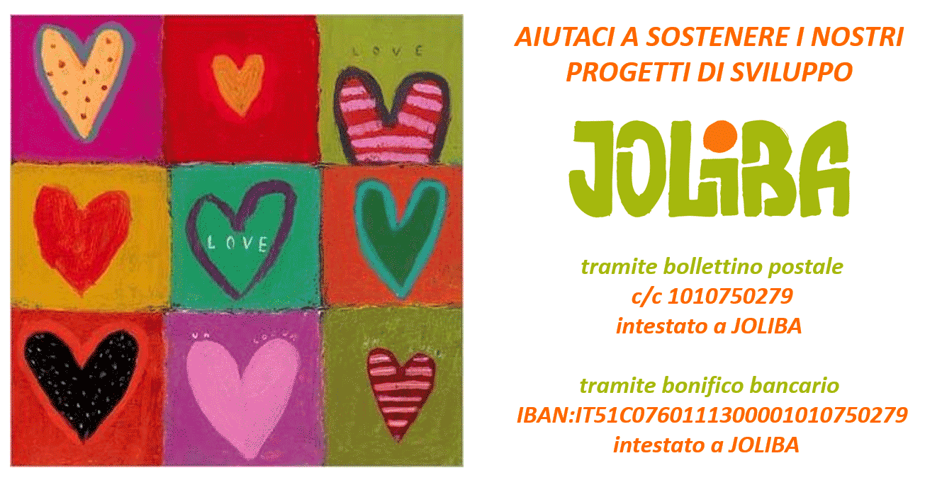 JOLIBA è un'Organizzazione di Volontariato apolitica, apar- titica, senza scopo di lucro, che persegue esclusivamente finalità di utilità sociale.